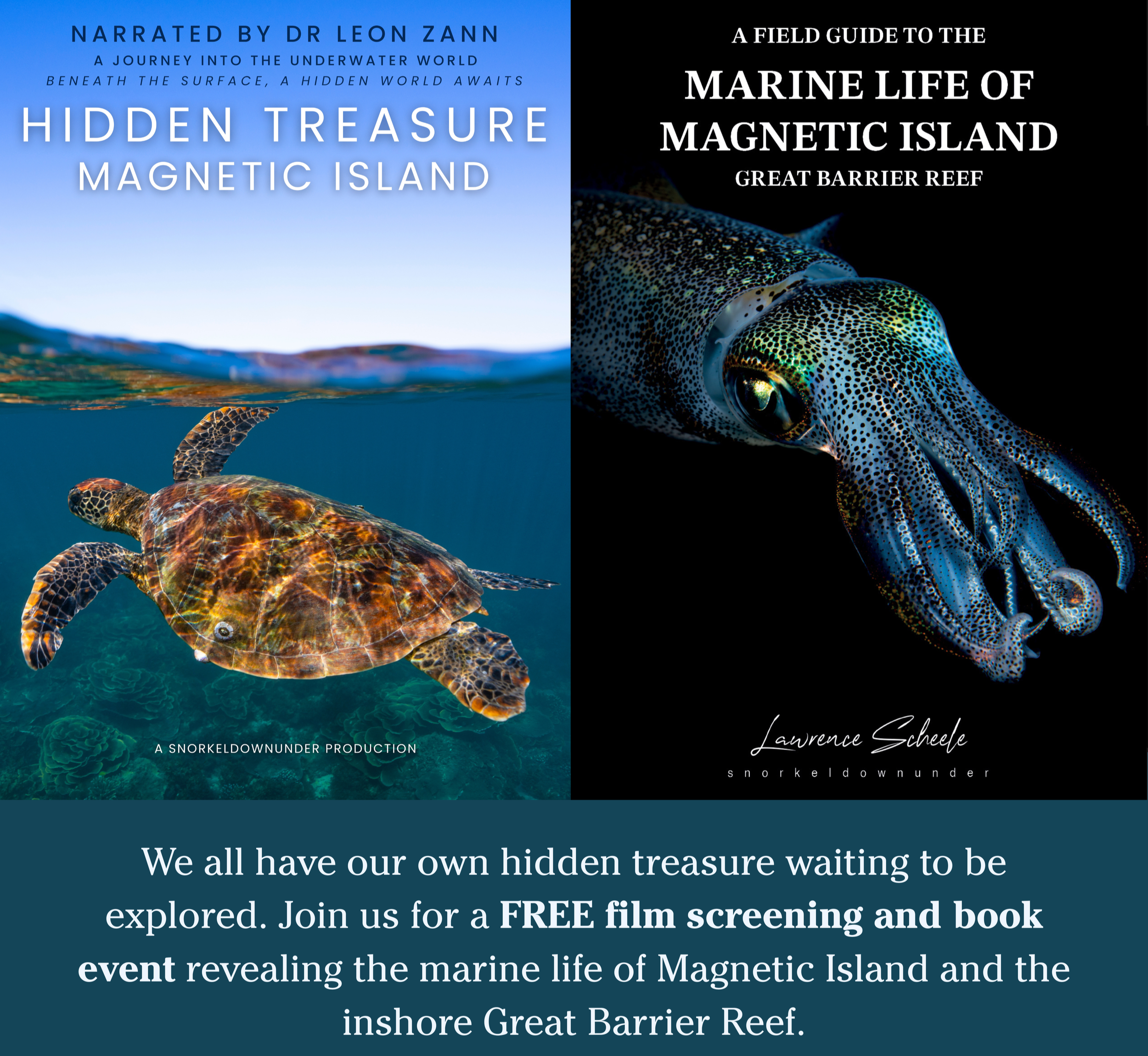 Join snorkeldownunder for a powerful and inspiring film and book event celebrating the inshore Great Barrier Reef. Featuring a 26-minute short film and the launch of the first book dedicated specifically to these often-overlooked reef systems, the evening shares stories of marine life, coastal communities, and the importance of reef conservation.